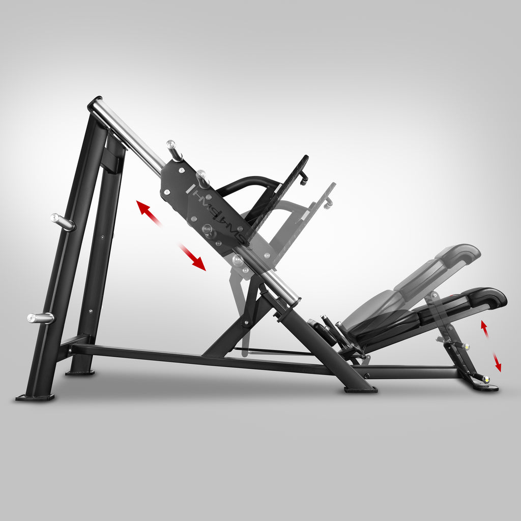 Urządzenie zostało wyposażone w tapicerkę z imitacją karbonu, olimpijskie bolce na obciążenie oraz praktyczny system przechowywania talerzy. Dzięki temu Leg Press Machine spełnia wymagania profesjonalnych klubów fitness, trenerów personalnych oraz zaawansowanych użytkowników treningu siłowego.