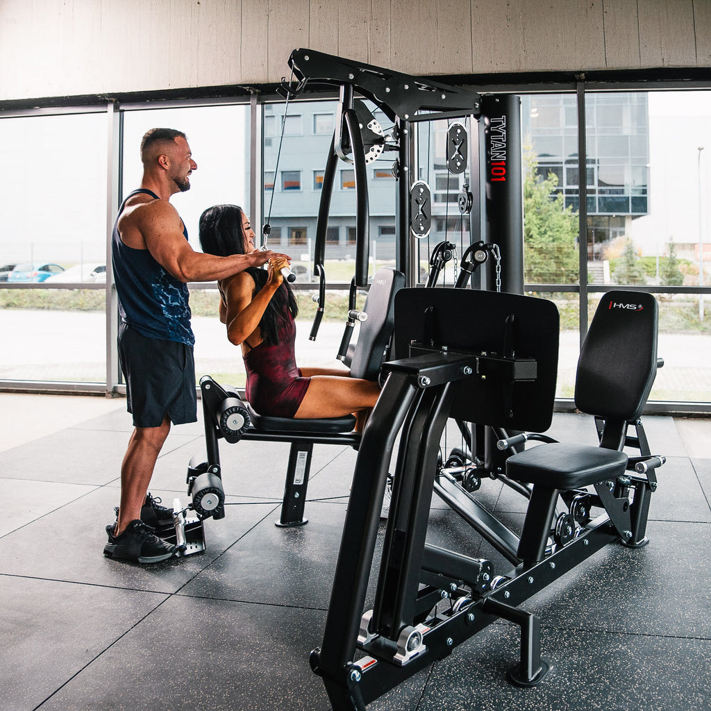 TYTAN 101 od HMS to w pełni komercyjny atlas do ćwiczeń z 90-kilogramowym stosem i przełożeniem cable ratio 1:1, który zapewnia płynny, realistyczny opór i kompletny trening całego ciała na niewielkiej przestrzeni. Rozbudowana regulacja siedziska, oparcia i ramion pozwala precyzyjnie dopasować sprzęt do sylwetki każdego użytkownika.