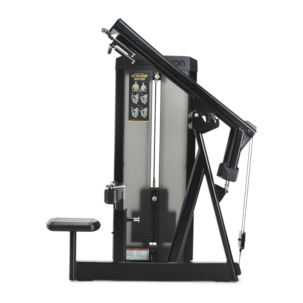 Maszyna do wiosłowania górnego została wykonana z wysokiej jakości stali o podwyższonej odporności, co zapewnia jej trwałość nawet przy intensywnym, codziennym użytkowaniu. Elektrostatyczna powłoka proszkowa chroni powierzchnię przed zarysowaniami i korozją, a zamknięty stos obciążeniowy ogranicza dostęp do ruchomych części, zwiększając bezpieczeństwo użytkownika. Strefy narażone na uszkodzenia mechaniczne zabezpieczone są dodatkowymi stalowymi panelami, które wydłużają żywotność urządzenia.