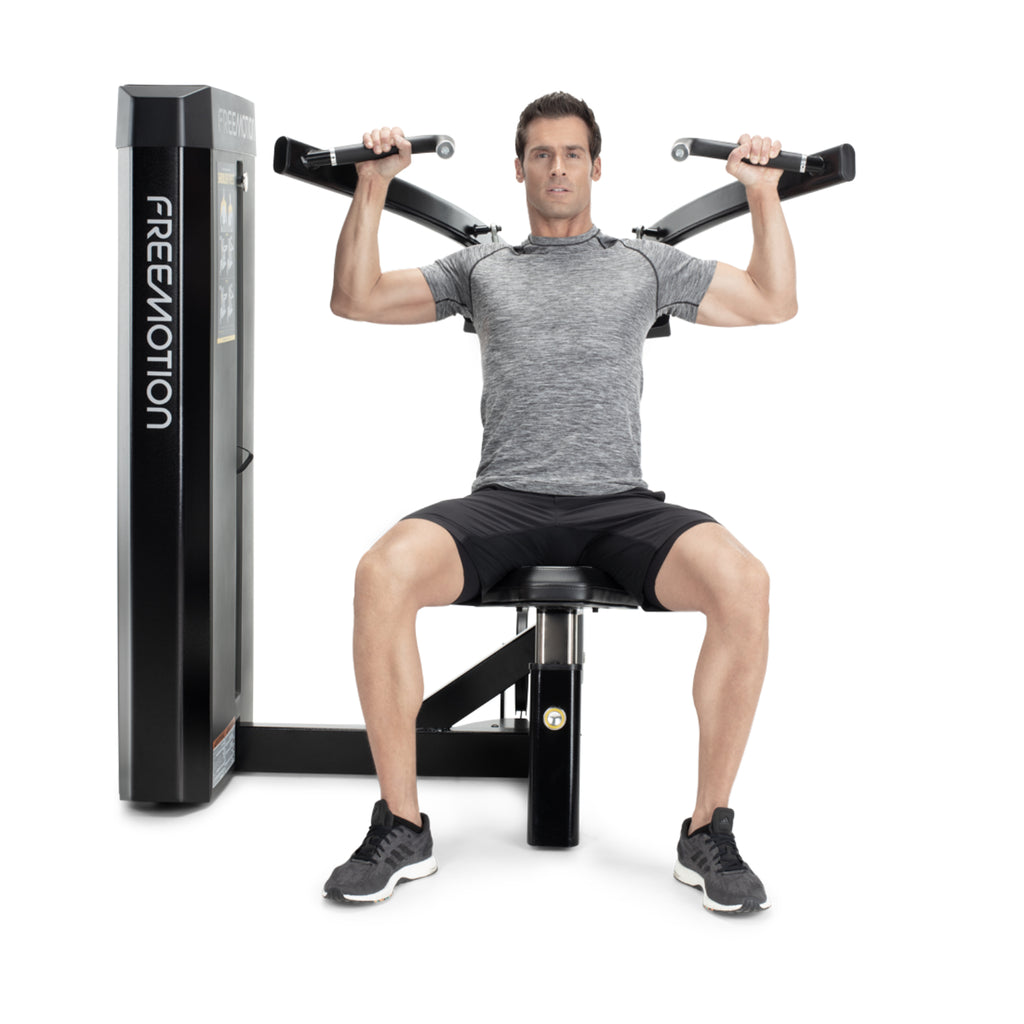 Maszyna na mięśnie ramion została zaprojektowana tak, aby odzwierciedlać naturalny tor ruchu ramion. Ruch w osi zbieżnej pozwala rozpocząć ćwiczenie w szerokim rozstawie, a zakończyć w wąskim, co maksymalizuje napięcie mięśniowe i wpływa na pełniejsze zaangażowanie mięśni barków. Uchwyty oferują możliwość zmiany pozycji dłoni, co pozwala lepiej dopasować ćwiczenie do indywidualnych potrzeb użytkownika. Dzięki temu można precyzyjnie pracować nad różnymi częściami mięśni naramiennych, zwiększając siłę, stabilność i zakres ruchu.