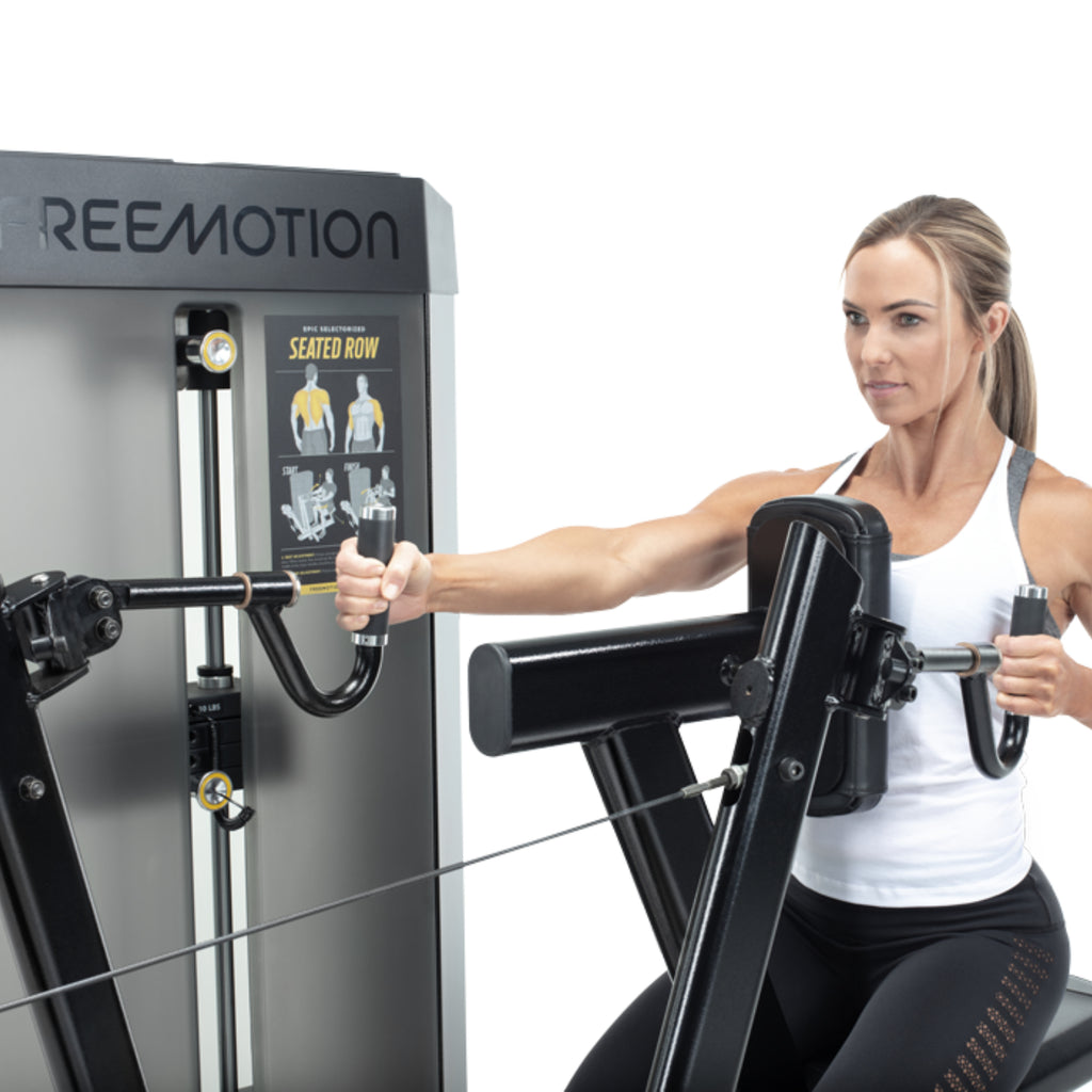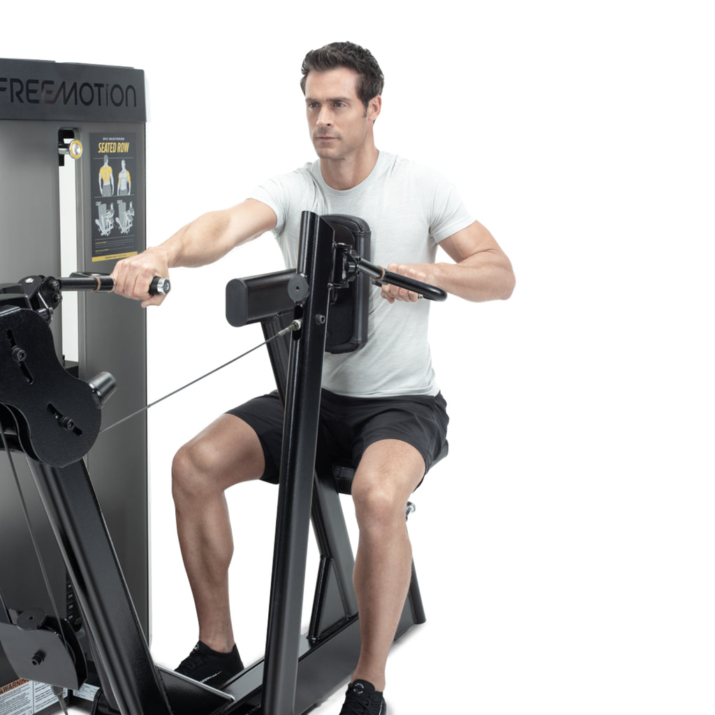 Maszyna do wiosłowania marki Freemotion to profesjonalne urządzenie siłowe, które umożliwia efektywny trening mięśni grzbietu, ramion oraz mięśni stabilizujących tułów. Dzięki ergonomicznej konstrukcji możesz wykonywać ćwiczenia w naturalnym torze ruchu, co sprzyja maksymalnemu zaangażowaniu mięśni i poprawie postawy ciała. Urządzenie zostało zaprojektowane tak, aby zapewnić komfort i bezpieczeństwo podczas każdej sesji treningowej, niezależnie od Twojego poziomu zaawansowania. Stabilna pozycja siedząca oraz regulowane elementy pozwalają dopasować maszynę do indywidualnej budowy ciała, co zwiększa wygodę i kontrolę nad techniką. Maszyna do wiosłowania marki Freemotion sprawdzi się zarówno w siłowniach komercyjnych, jak i w klubach fitness oraz prywatnych strefach treningowych, gdzie liczy się skuteczność i trwałość sprzętu.