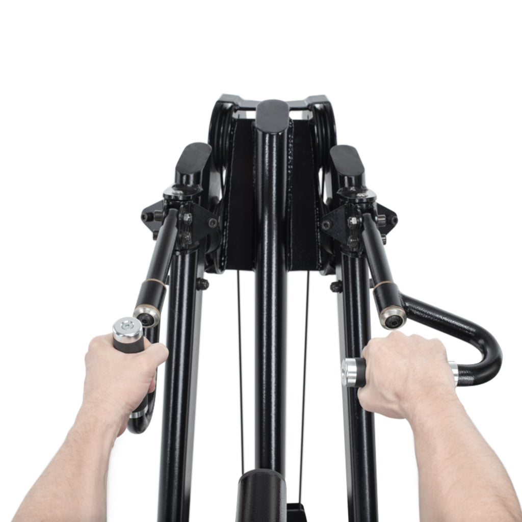 Maszyna została zaprojektowana tak, aby wspierać naturalny zakres ruchu podczas ćwiczeń przyciągania. Dzięki zastosowaniu systemu prowadnic i bloczków ruch jest płynny i kontrolowany, co pozwala na precyzyjne angażowanie mięśni pleców, ramion i korpusu. Pełny zakres ruchu umożliwia maksymalne rozciągnięcie i skurcz mięśni, co przyczynia się do efektywniejszego treningu siły i wytrzymałości. Takie rozwiązanie sprzyja równomiernemu rozwojowi górnej części ciała bez nadmiernego obciążania stawów.