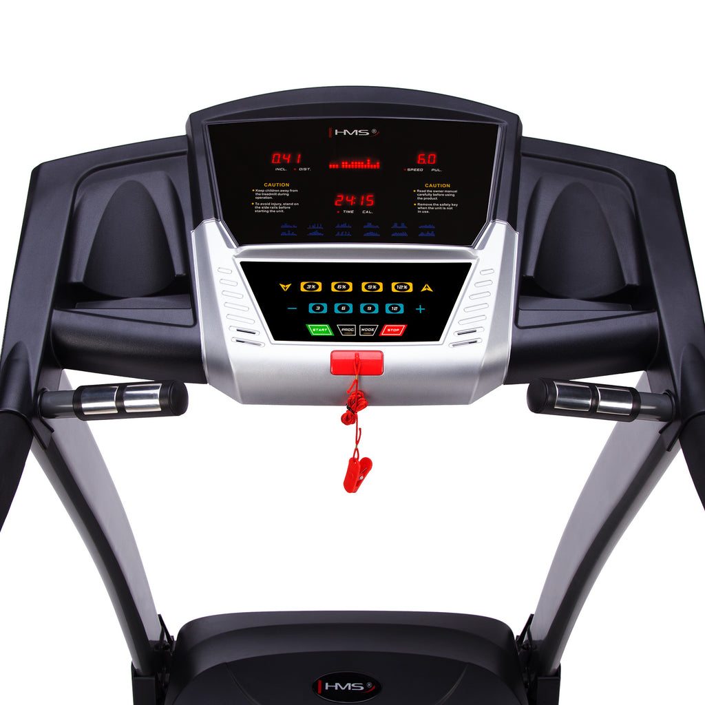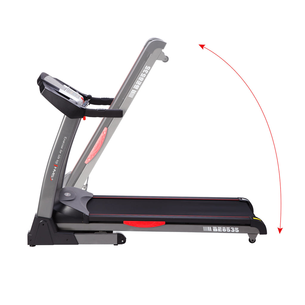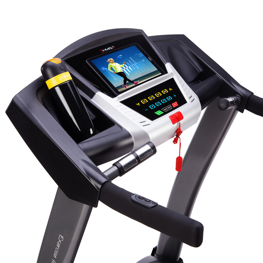 The HMS BE8535 Electric Treadmill is a massive, stable device adapted to conduct intensive training at home. The large running belt, providing a comfortable space for exercise, is cushioned by 4 elastomers and 2 rubber shock absorbers, which guarantee lightness and elasticity of the run. The spacious control panel with a large computer display allows for convenient management of settings, and the buttons for quick selection of speed and angle of inclination programs are particularly useful. The computer has 99 programs and a touch screen. The HMS BE 8535 treadmill is characterized by a wide range of adjustment of the angle of the running belt and speed, which opens up access to a very versatile training. Thanks to the possibility of connecting to the treadmill via Bluetooth and built-in speakers, training can be carried out to the sounds of music, which helps maintain the rhythm and smoothness of the exercises. The easy folding system allows for great space saving. To increase safety, when unfolding the treadmill before training, 2 additional actuators have been installed to slow down the lowering of the treadmill.