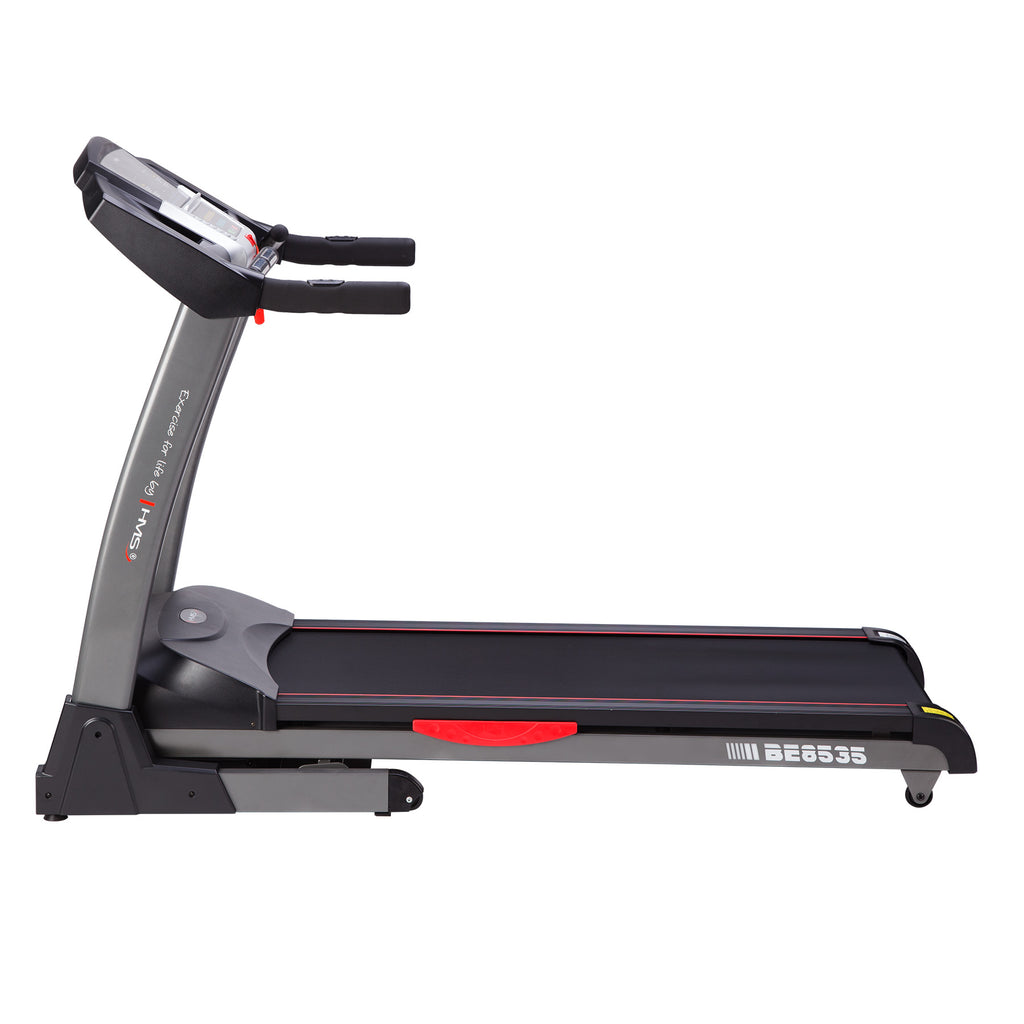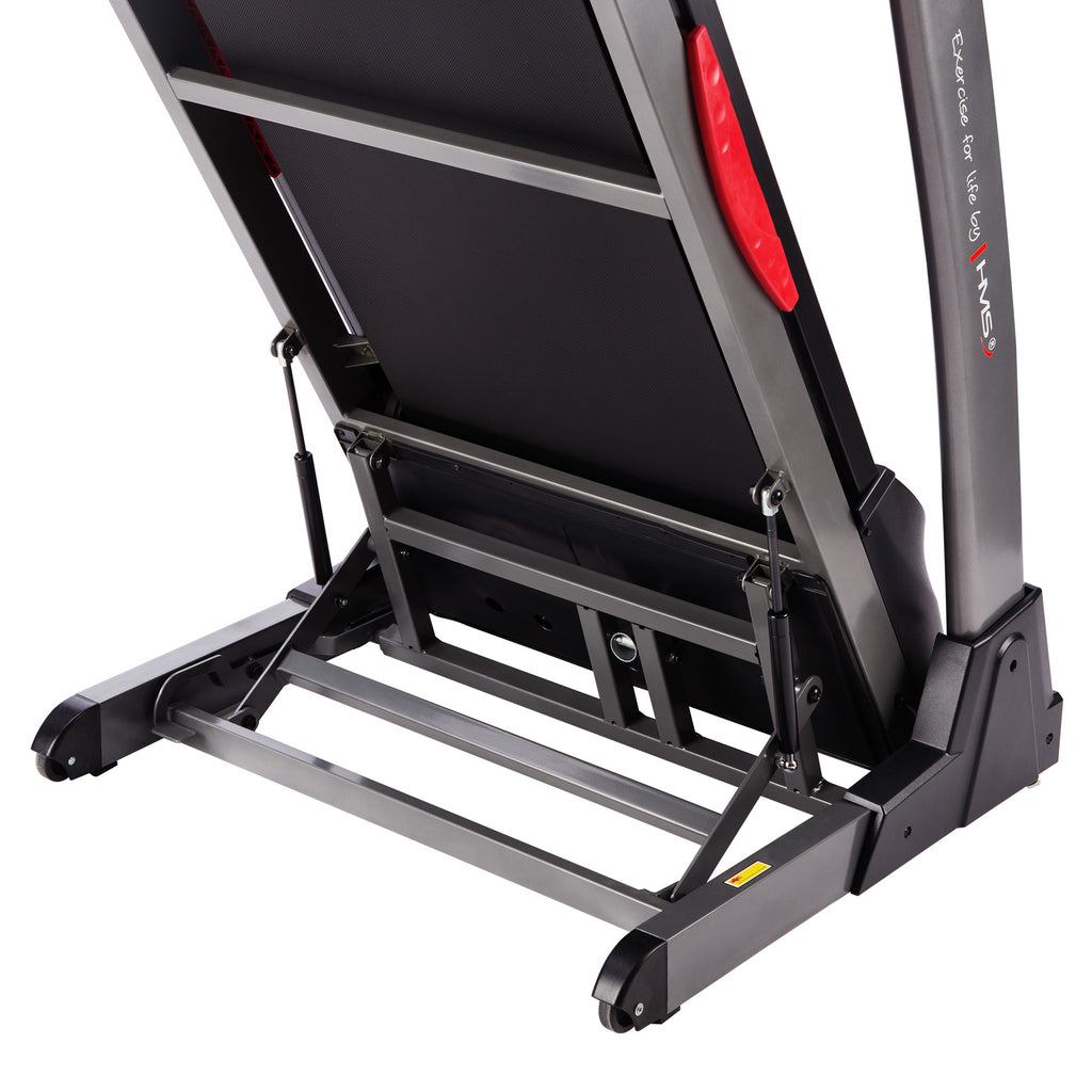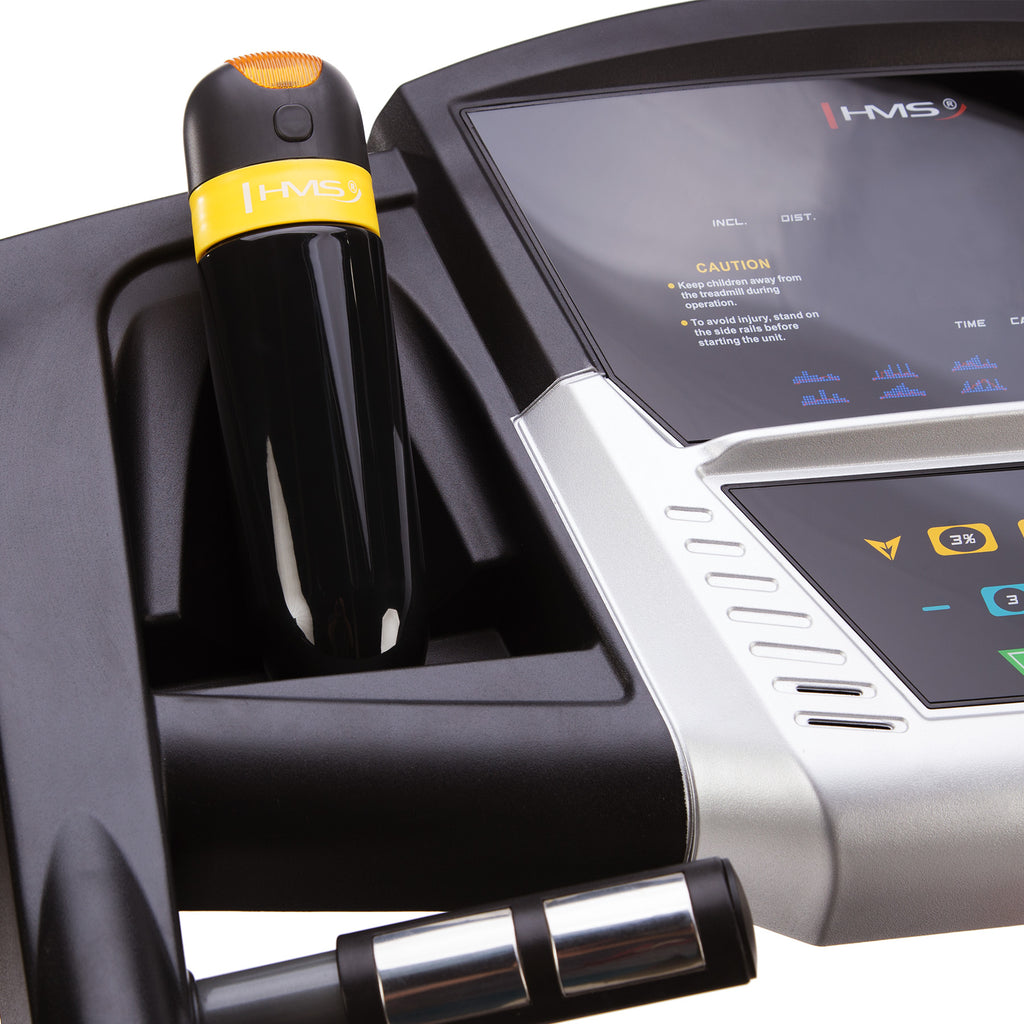 The HMS BE8535 Electric Treadmill is a massive, stable device adapted to conduct intensive training at home. The large running belt, providing a comfortable space for exercise, is cushioned by 4 elastomers and 2 rubber shock absorbers, which guarantee lightness and elasticity of the run. The spacious control panel with a large computer display allows for convenient management of settings, and the buttons for quick selection of speed and angle of inclination programs are particularly useful. The computer has 99 programs and a touch screen. The HMS BE 8535 treadmill is characterized by a wide range of adjustment of the angle of the running belt and speed, which opens up access to a very versatile training. Thanks to the possibility of connecting to the treadmill via Bluetooth and built-in speakers, training can be carried out to the sounds of music, which helps maintain the rhythm and smoothness of the exercises. The easy folding system allows for great space saving. To increase safety, when unfolding the treadmill before training, 2 additional actuators have been installed to slow down the lowering of the treadmill.