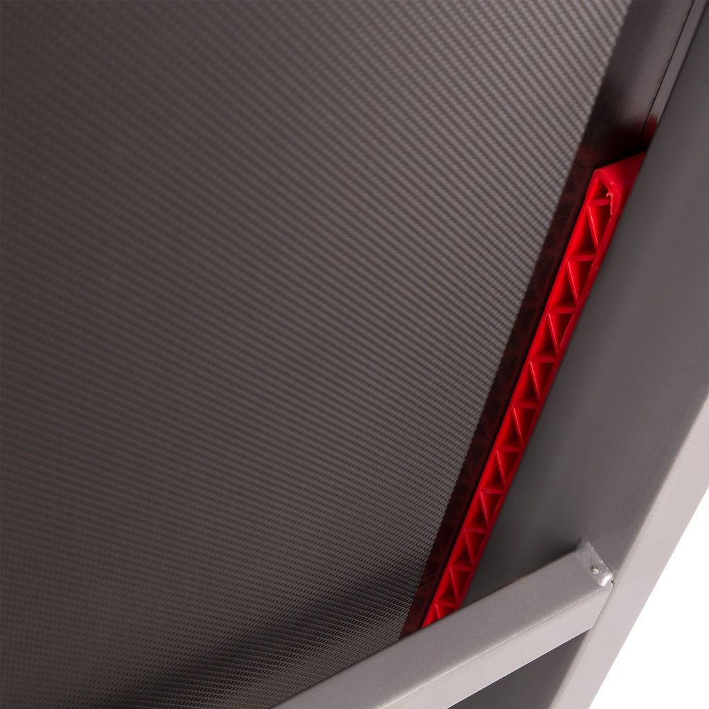 - Shock absorption system: 4 elastomers and 2 rubber shock absorbers between 2 layers of the running belt frame