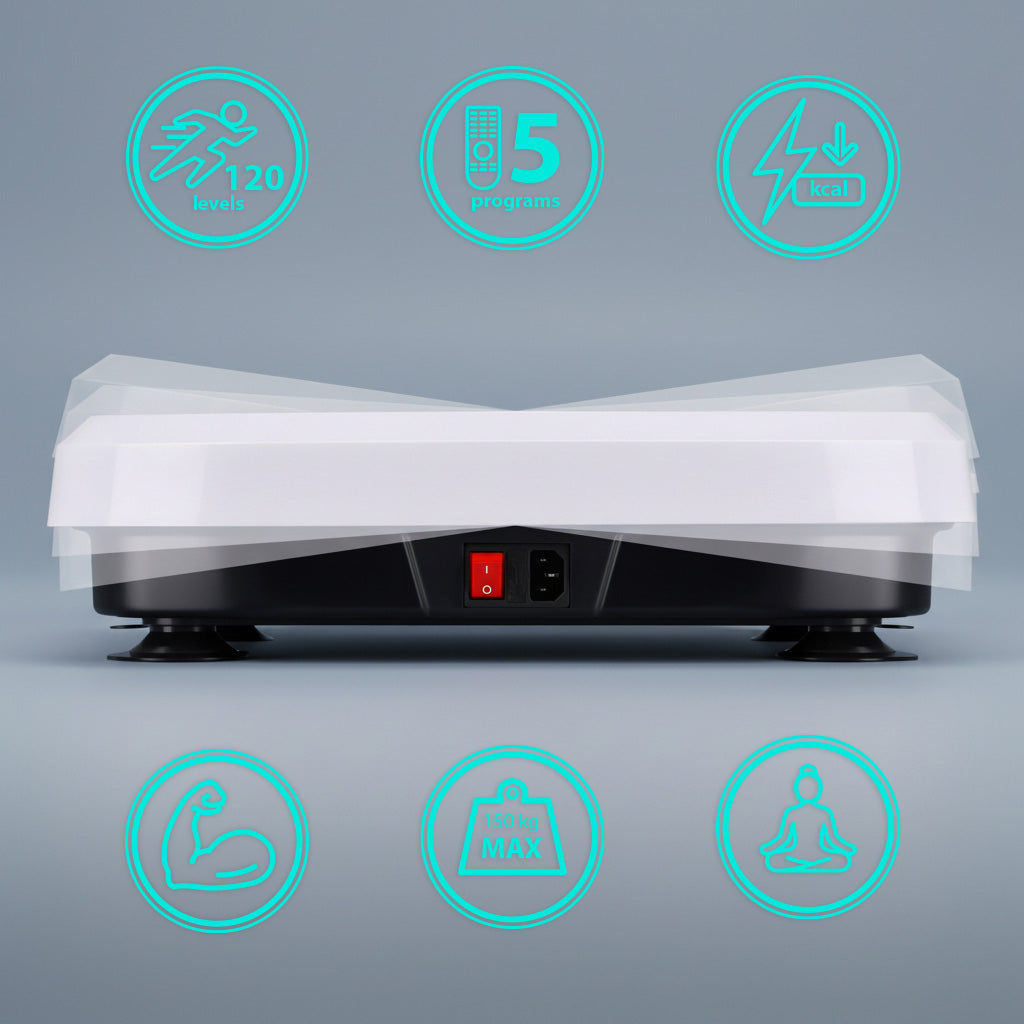 Platforma została wyposażona w 5 wbudowanych programów treningowych, które automatycznie dobierają parametry pracy, pomagając osiągać różne cele treningowe – od poprawy krążenia po wzmacnianie mięśni. Dodatkowo możliwa jest ręczna regulacja czasu treningu w zakresie od 1 do 20 minut, co pozwala idealnie dopasować ćwiczenia do indywidualnych potrzeb.