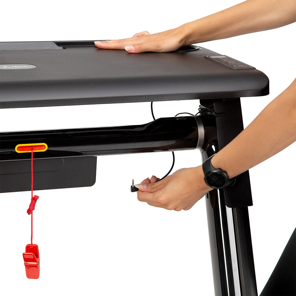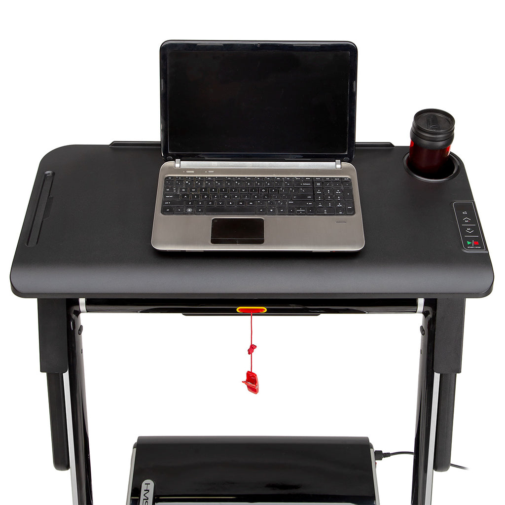 Dzięki stolikowi, połączenie pracy i aktywności fizycznej, teraz będzie możliwe. Podłączenie stolika, ogranicza prędkość bieżni do 6 km/h, a więc obsługa laptopa, w trakcie marszu nie będzie problemem. Na stoliku, znajduje się uchwyt na bidon lub kubek, jest również uchwyt na tablet. Dzięki specjalnemu panelowi sterowania, możemy w każdej chwili zwolnić lub wyłączyć bieżnie. Takie rozwiązanie, jest świetną alternatywą dla pracy za biurkiem.