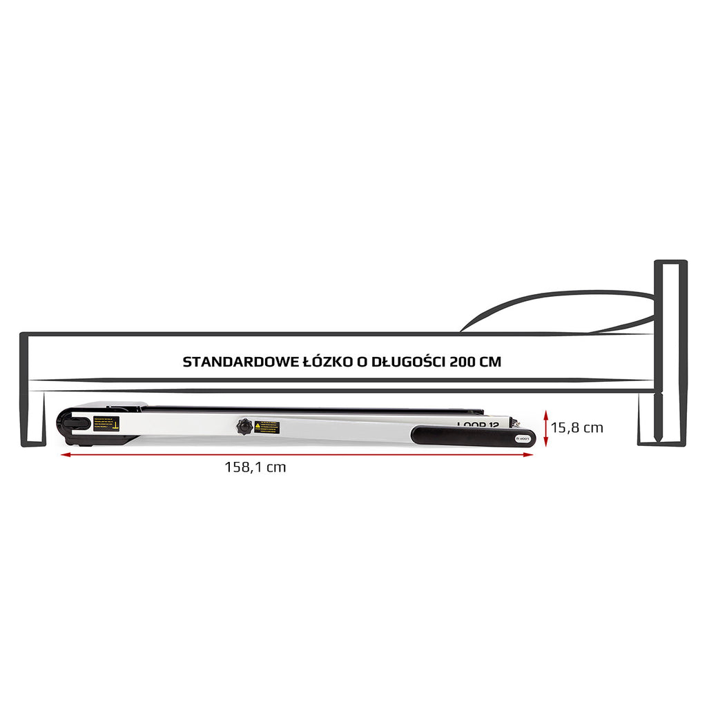 Kolejnym atutem bieżni jest rozmiar, dzięki składanej poręczy nie zajmuje dużo miejsca. Przestawianie LOOP12 MULTI również nie będzie problemem, dzięki zamontowanym kółkom transportowym, bez specjalnego wysiłku, możemy poruszać bieżnią pionowo oraz poziomo.