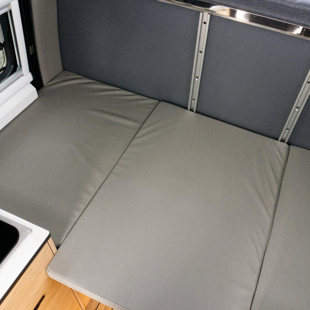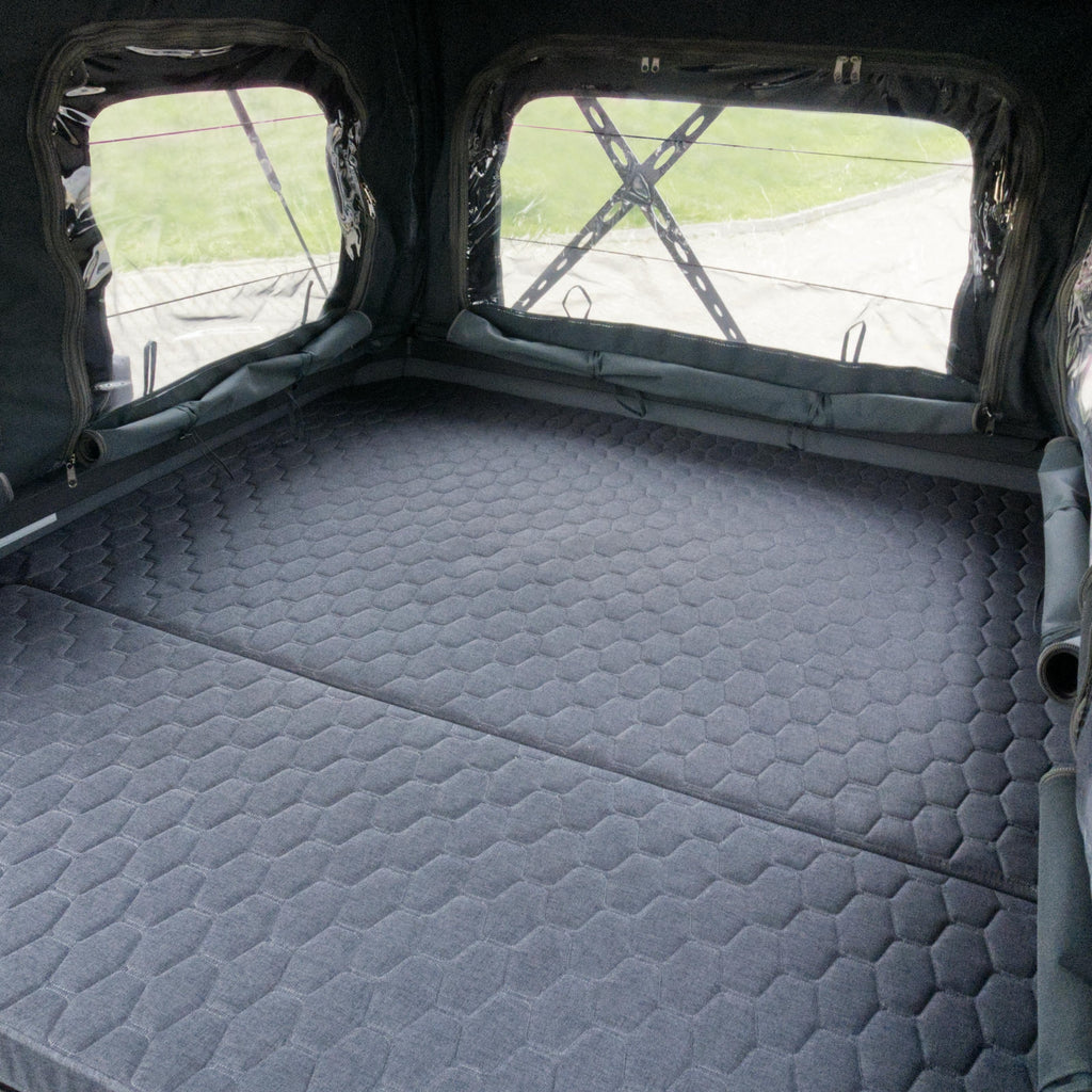 W środku znajduje się składany stolik, który można w kilka chwil zmienić w dodatkowe łóżko. Jest także dodatkowy właz otwierany z zewnątrz, który ułatwia dostęp i wentylację. Przestrzeń bagażowa została maksymalnie wykorzystana: pod siedzeniami są dwie bakisty, nad nimi dwie szafki. Jest też miejsce przewidziane na lodówkę lub jako dodatkowy stolik. Dzięki temu cały ekwipunek ma swoje miejsce, a wnętrze pozostaje uporządkowane i funkcjonalne.