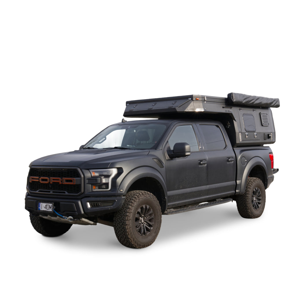 Zabudowa ATAKAMA XL jest przeznaczona dla amerykańskich pick-upów typu full-size truck z przestrzenią ładunkową o długości około 1700 mm i szerokości około 1500 mm. Projektowana jest pod popularne modele z tego segmentu. Montaż przebiega tak jak w wersji europejskiej: podnosisz kapsułę na dołączonych nogach, podjeżdżasz autem, opuszczasz ją na pakę i zabezpieczasz pasami lub śrubami montażowymi.