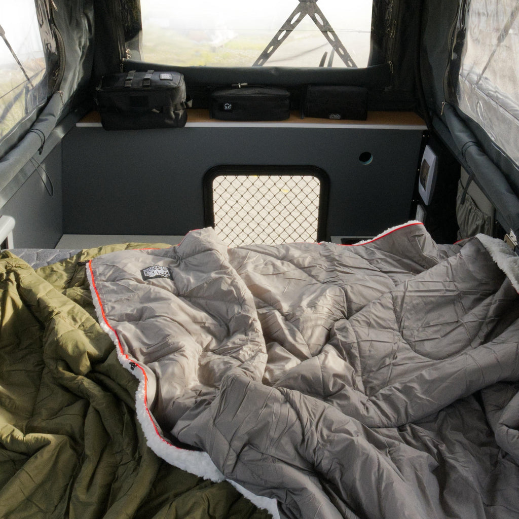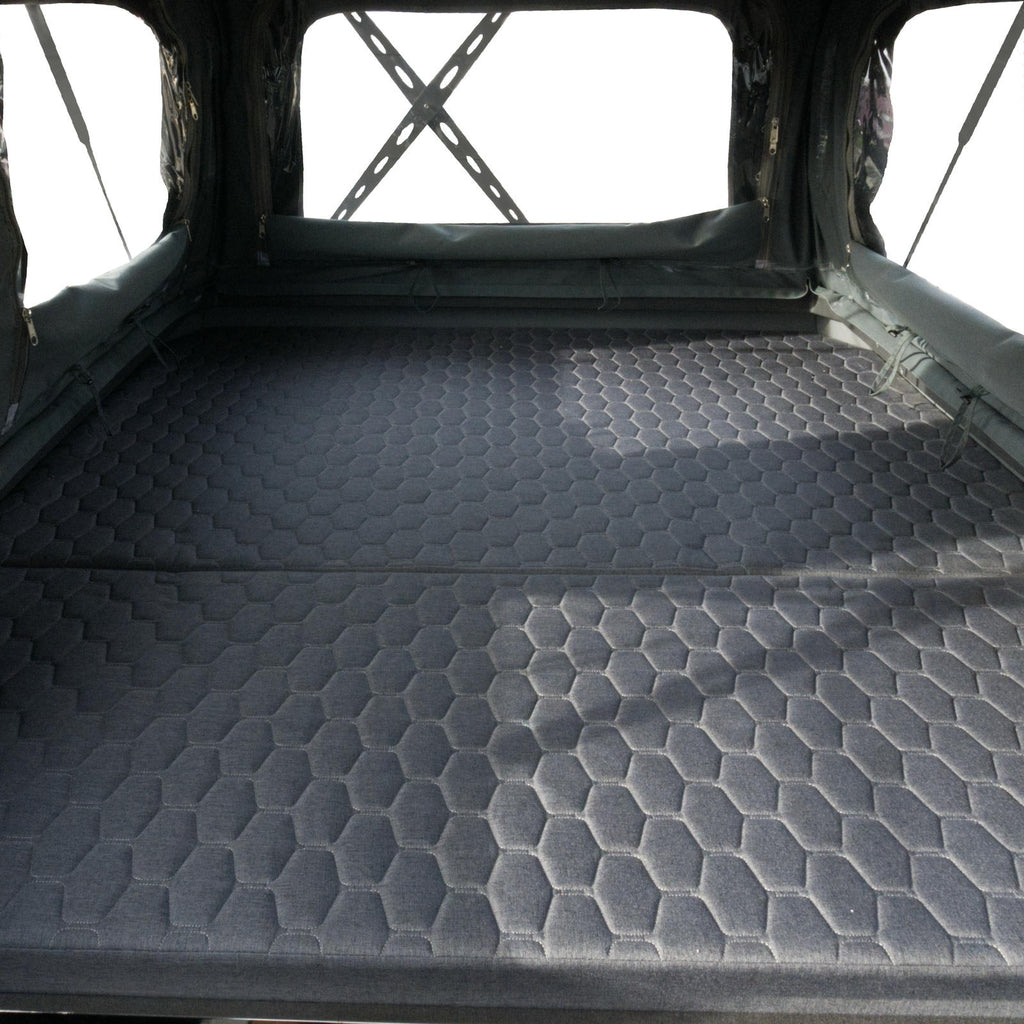ATAKAMA XL jest zabudową całoroczną. Ściany mają konstrukcję aluminiową z wypełnieniem z pianki izolacyjnej. Taki układ dobrze chroni przed zimnem i przed wysokimi temperaturami. Dzięki większym wymiarom we wnętrzu jest znacznie więcej miejsca niż w europejskiej Atakamie – masz bardziej przestronną część dzienną, większą powierzchnię spania oraz dodatkową przestrzeń bagażową. Rozkładany dach otwierany na całej płaszczyźnie mocno zwiększa poczucie przestrzeni oraz dopływ naturalnego światła. Po złożeniu kapsuła zachowuje zwarte, opływowe proporcje, co ułatwia długie przeloty.