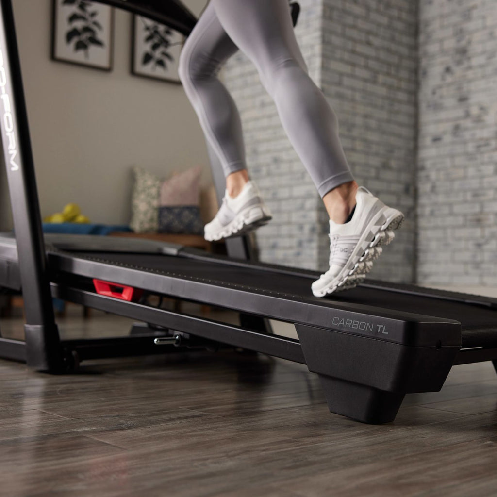 MAKSYMALNA WAGA UŻYTKOWNIKA: Solidna konstrukcja oraz nierozciągliwy pas bieżni Carbon TL przeznaczony jest dla użytkowników o masie ciała nieprzekraczającej 136 kg.