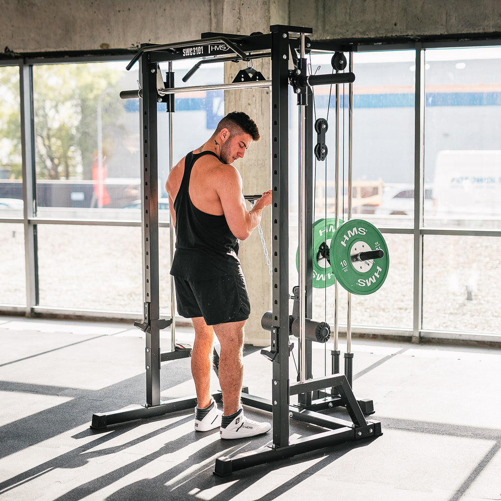 Łącząc suwnicę Smitha, rack treningowy oraz wyciągi o przełożeniu 1:1, SWC3101 od HMS Fitness stanowi kompletną platformę do treningu siłowego i funkcjonalnego. To inwestycja w trwałość, bezpieczeństwo i maksymalną wszechstronność.