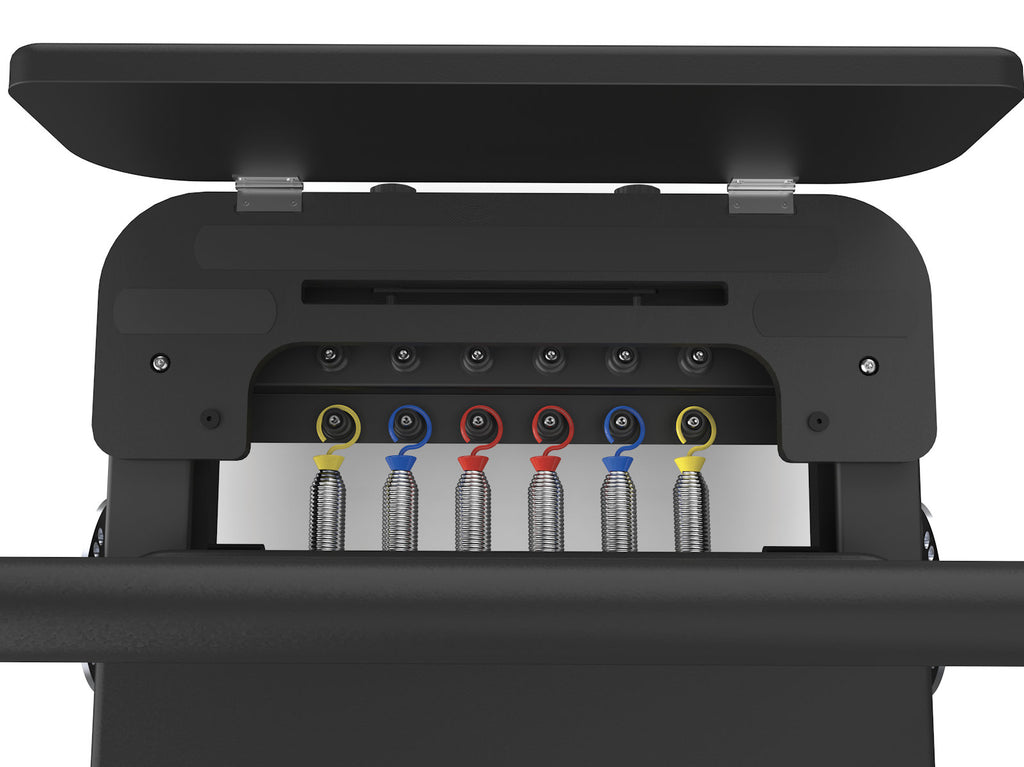 W standardzie znajduje się automatyczny system lin, uchylna platforma antypoślizgowa, a także komplet akcesoriów: box i jumpboard. Reformer pozwala na trening zgodny z naturalną biomechaniką i spełnia rygorystyczne normy EN ISO 20957 (klasa S).