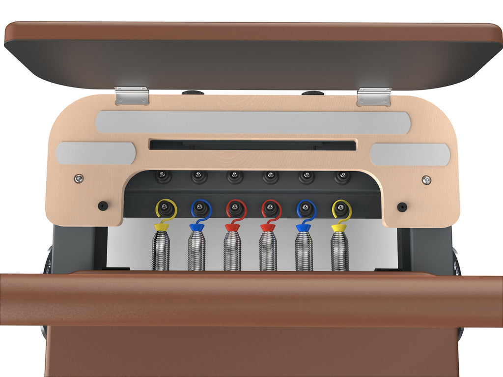 W standardzie znajduje się automatyczny system lin, uchylna platforma antypoślizgowa, a także komplet akcesoriów: box i jumpboard. Reformer pozwala na trening zgodny z naturalną biomechaniką i spełnia rygorystyczne normy EN ISO 20957 (klasa S).